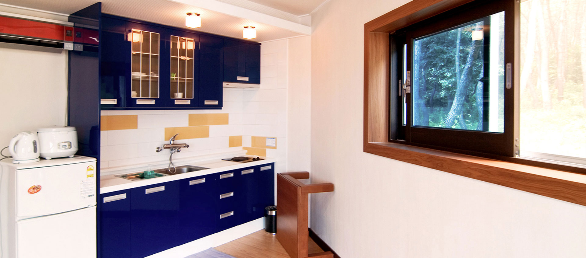 티테이블, 벽걸이 TV, 냉장고, 에어컨, 정수기, 헤어드라이기, 전기밥통, 모든 주방용품, 핫주전자, 샤워부스, 수건, 비누, 샴푸, 티슈, 옷걸이, 구두주걱,인터넷케이블