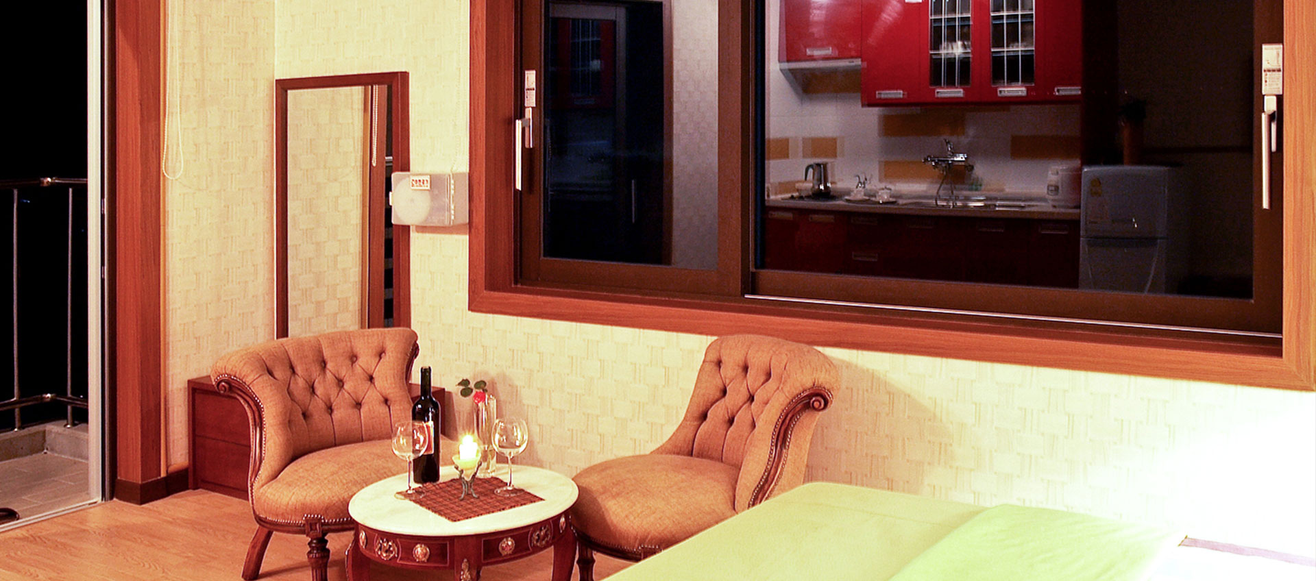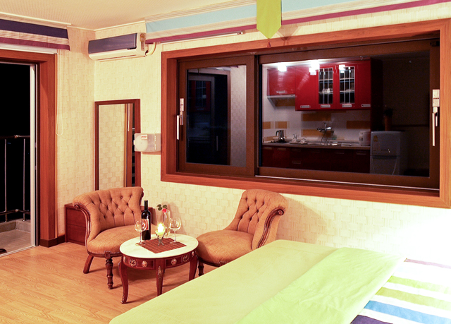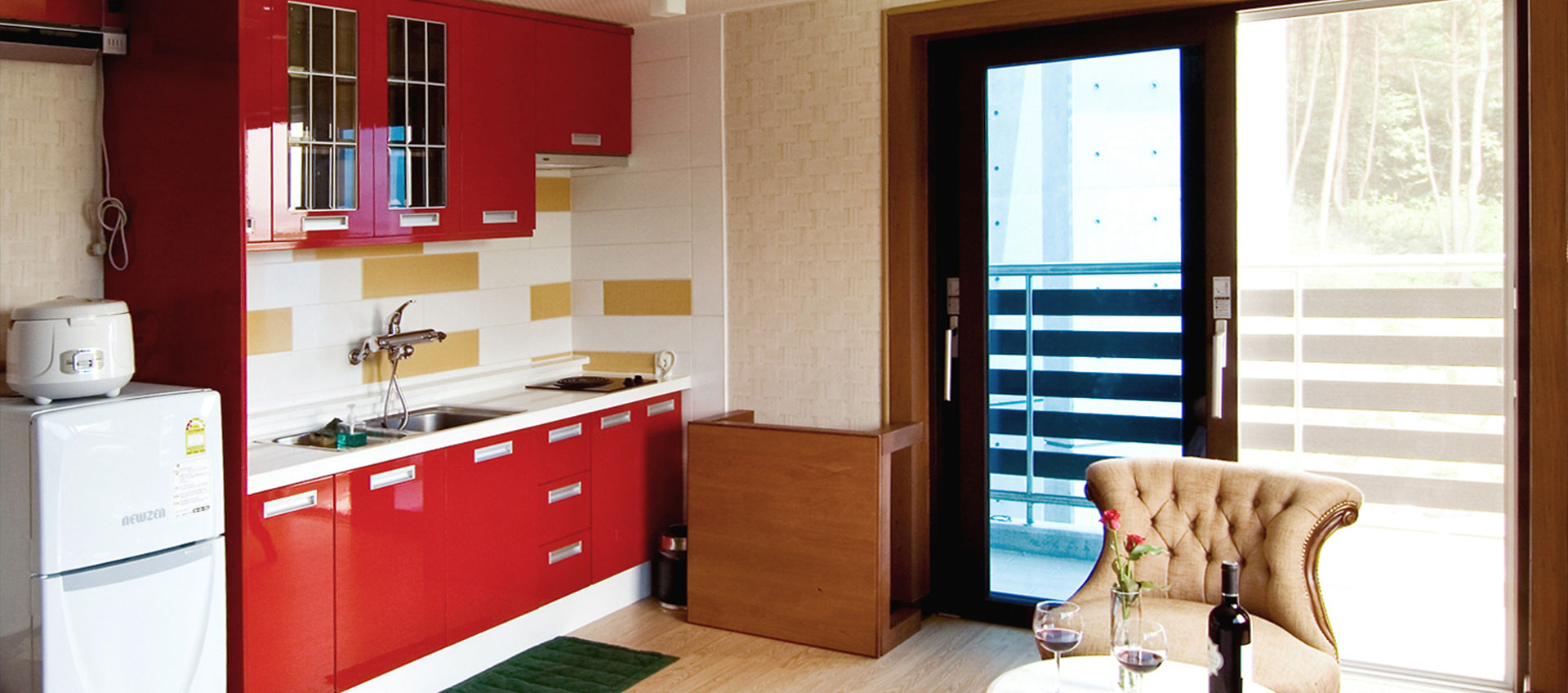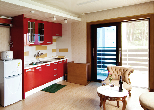 티테이블, 벽걸이 TV, 냉장고, 에어컨, 정수기, 헤어드라이기, 전기밥통, 모든 주방용품, 핫주전자, 샤워부스, 수건, 비누, 샴푸, 티슈, 옷걸이, 구두주걱,인터넷케이블